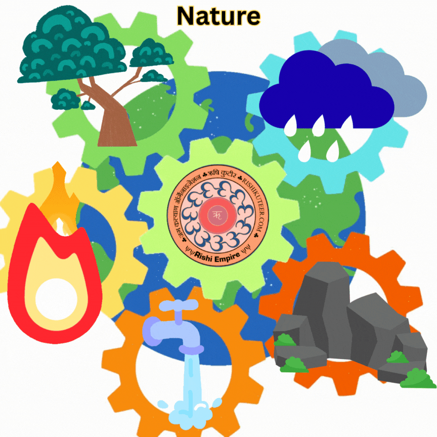 Here you will see that first of all there was nothing, that is there was ether. The explosion of molecules produced the sky element. The explosion of the sky element produced the air element, then the combined explosion of air and sky produced fire. The combined explosion of the fire element, air element and sky element produced water element. Then the combined explosion of the above four elements produced the earth element. Nature was created by the inclusion of the five elements on earth.